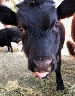 Besides, they are so entertaining! Every morning, I look out my window and watch the cows playing in the grass. This may be new information to you, but they are hilarious. At least our cows are. Every one of them has a personality that is identifiable from far away. If I watch them for a few minutes, I can usually tell who is who by what they are doing. There is always a pecking order game being played and it seems that the Top Beef changes daily. Whichever one comes up to us first for scratches and apples in the evening is the apparent winner!