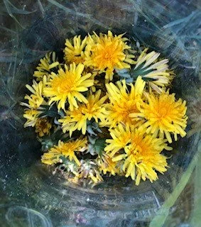 The dandelions in our yard just started blooming the other day! We need an ample supply of them to put in jars and cover with silky olive oil for one of our essential oil soaps - Sunny Dandelion.